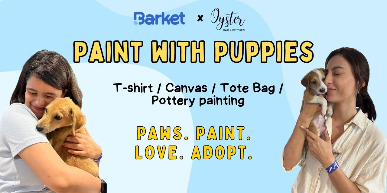 For the first time ever, choose what you paint! You can now paint a t-shirt, a canvas, a pottery item, a tote bag or everything all at once. And guess what, thatโs not all! You will have adorable little puppies playing around while you explore your artistic side. Event Highlights: ๐จ Painting Sessions: Channel your inner artist and create a masterpiece. Let your imagination run wild as you paint alongside playful puppies. ๐พ Puppy Playtime: Take a break from your canvas and enjoy some quality time with our furry friends. Watch them play, cuddle up for a nap, or even lend a paw to your painting! ๐ธ Photo Opportunities: Capture unforgettable moments with our photogenic puppies at our designated photo spots. Snap selfies, group shots, or candid moments to cherish forever. ๐ Painting Supplies: Don`t worry about bringing your own supplies โ we`ll provide everything you need to create your masterpiece, from canvases to brushes and paint.